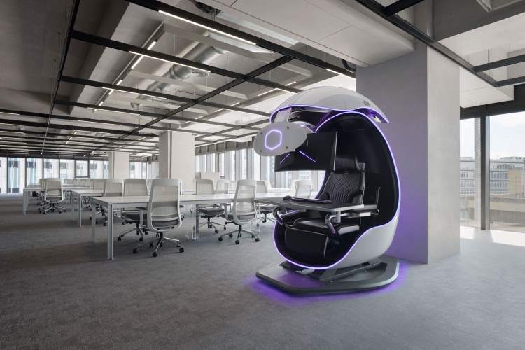O projeto Orb X permitirá que o usuário isolado do mundo exterior para aumentar a produtividade na execução do trabalho. Suporte para a instalação de um 34 polegadas ou três de 27 polegadas monitores. Existe um lugar para colocar o computador portátil ou console de jogos.
