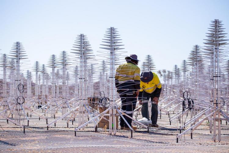 Na Austrália, a Organização SKA colabora com a Organização Nacional de Pesquisa Científica e Aplicada (CSIRO) para construir e gerenciar telescópios.