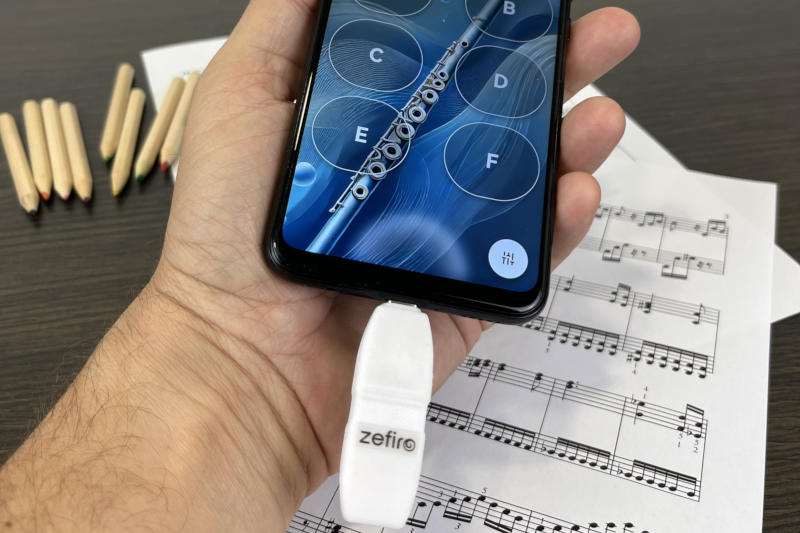 A startup italiana ARTinoise apresentou um acessório inusitado com porta USB Type-C – que transforma dispositivos móveis em instrumentos musicais. O aparelho, chamado Zefiro, lembra um pendrive, mas se você conectá-lo ao celular e soprar no buraco do acessório, a saída produzirá o som de um instrumento musical real.