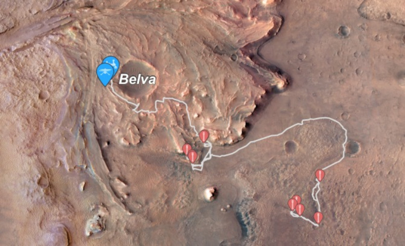 O rover trabalha no planeta há mais de dois anos na cratera do lago – a NASA se interessou pela região, já que no passado distante a cratera era o leito de um lago, e o rio que a alimentava tinha um delta distinto. O Perseverance está atualmente se movendo perto da Cratera Belva, localizada dentro do Lago.