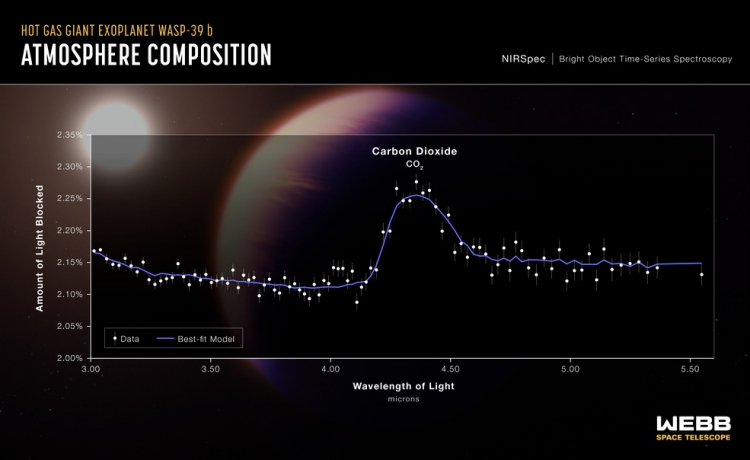 Pela primeira vez na história das observações de exoplanetas, um espectrógrafo montado no Telescópio James Webb ajudou a identificar traços distintos de dióxido de carbono na atmosfera de um planeta localizado fora do sistema solar. Estamos falando do WASP-39b, localizado a 700 anos-luz da Terra.