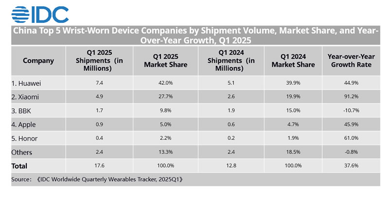 Dinâmica do mercado de dispositivos vestíveis da China no primeiro trimestre de 2025: