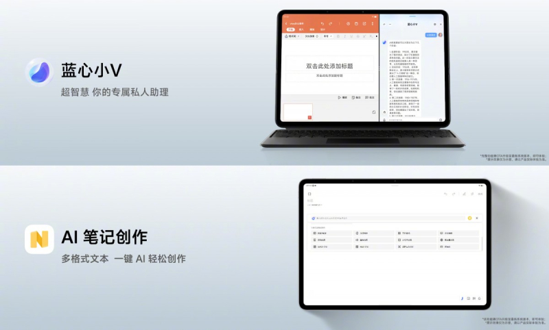 O tablet roda Android 14 com o shell proprietário OriginOS 4, que inclui o modelo de linguagem proprietário BlueLM AI. Este último inclui IA generativa para criação de imagens e texto, além do pacote office da Vivo, que suporta acesso remoto a PCs Windows e macOS, com o qual o tablet pode ser usado como monitor adicional.