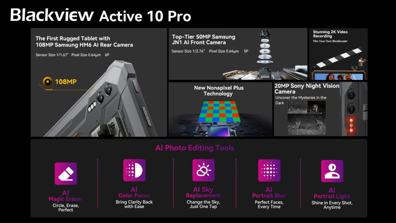 O tablet ultra-robusto Blackview Active 10 Pro com suporte para 5G e IA foi lançado hoje. O tablet está equipado com uma enorme bateria de 30.000 mAh e uma lanterna de camping de 400 lúmens, além de ser altamente resistente à umidade, poeira e choques, tornando-o um equipamento indispensável para os amantes de caminhadas e de passar momentos na natureza.