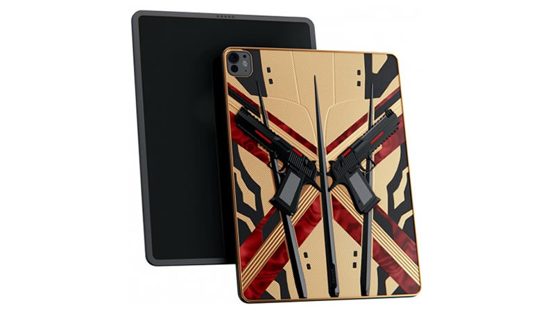 Uma característica distintiva da série iPad Pro Criss-Cross é o design do painel traseiro na forma da letra “X” das pistolas Desert Eagle Mark XIX com banho de ouro. Segundo os designers da Caviar, tal desenho remete aos personagens dos blockbusters cult – “Deadpool” e “Wolverine”, cuja tão esperada combinação em um filme acontecerá neste verão.