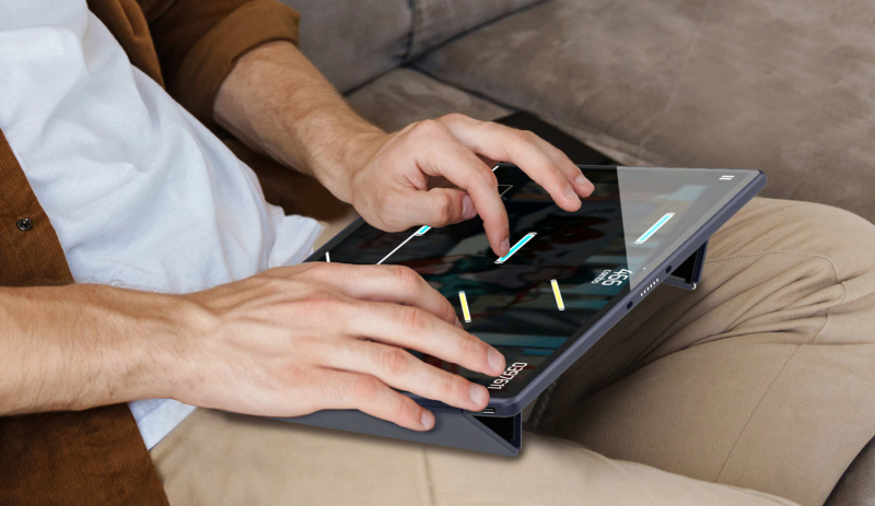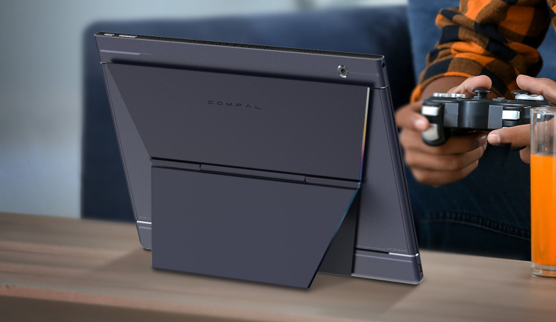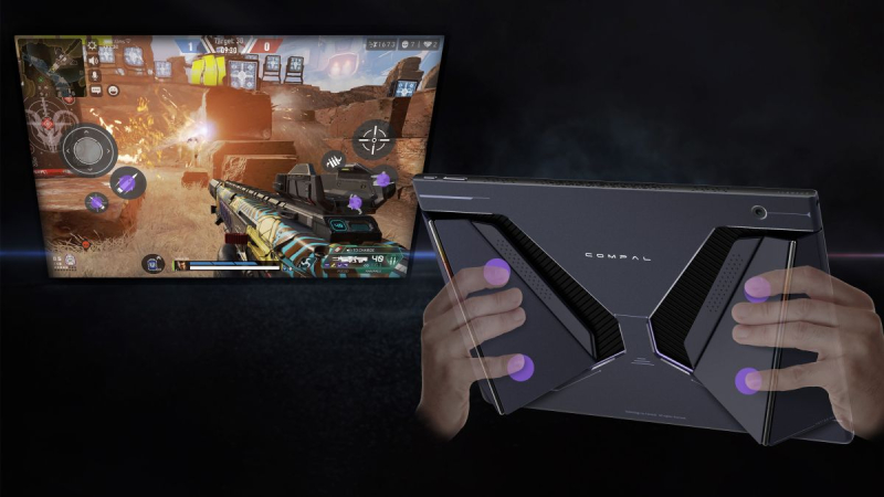 A Compal apresentou o conceito do tablet gaming Rover Play com uma tecnologia de controlo invulgar. O aparelho é equipado com gamepads de toque ultrassônico – o fabricante chama de tecnologia FlexiRear Controller. Ele permite não sacrificar a área da tela do tablet, mas colocar todos os controles principais do aparelho na parte traseira.