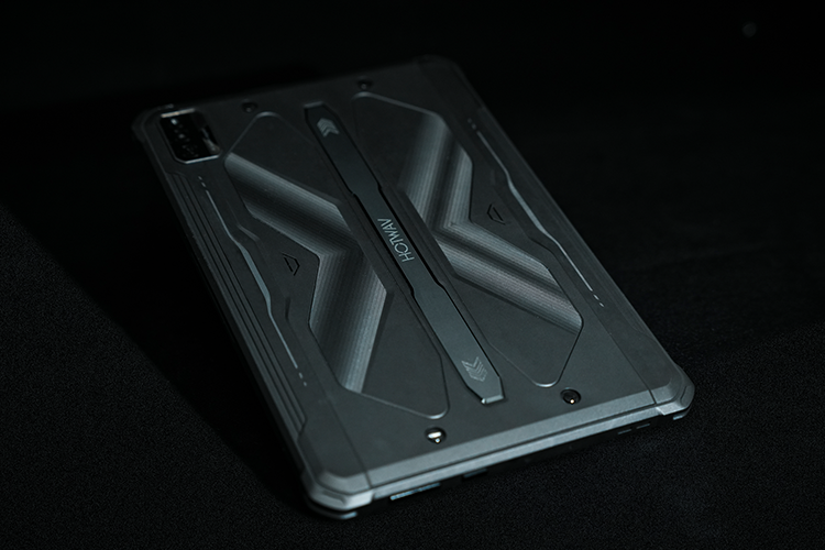 As dimensões do tablet são 252,5 × 168,5 × 15,5 mm, peso – 860 g. Cor da caixa – preto-laranja. O tablet vem com um suporte de alça que os usuários podem anexar opcionalmente à parte traseira do tablet. O dispositivo roda o Android 12 de estoque.