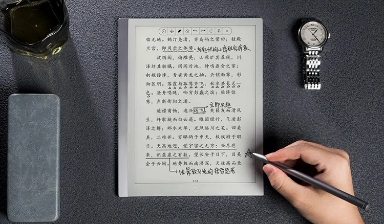 O gadget está equipado com uma tela de toque monocromática E Ink de 10,3 polegadas baseada em tinta eletrônica. O fabricante não especifica a resolução suportada pela tela. A tela suporta controle usando uma caneta eletromagnética e reconhece até 4096 graus de pressão, o que permite fazer anotações manuscritas e até desenhar.