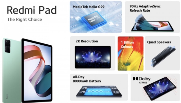 O tablet é executado no sistema operacional Android 12 com uma interface proprietária MIUI 13. Está disponível nas opções de cor do corpo cinza claro, cinza escuro e verde. A versão de 3 GB de RAM e 64 GB de armazenamento custa cerca de US$ 160, enquanto a versão de 6 GB de RAM e 128 GB de armazenamento custa US$ 210. As remessas do Redmi Pad começarão em 5 de outubro.