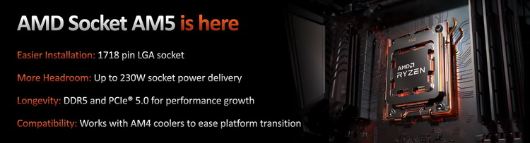 No entanto, a característica mais importante da nova plataforma é o novo soquete do processador, na verdade, Socket AM5. Este é um soquete no formato LGA, caracterizado pela presença de 1718 pinos e pela capacidade de transferir até 230 watts de potência para o processador. Ao mesmo tempo, o novo conector é compatível com os sistemas de refrigeração desenvolvidos para o Socket AM4.