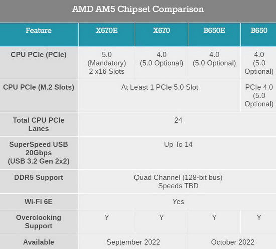 A empresa anunciou que placas-mãe baseadas nos chipsets AMD X670E e X670 estarão à venda em 27 de setembro, simultaneamente com os processadores Ryzen 7000. As placas baseadas nos chipsets B650E e B650 devem estar disponíveis em outubro. Placas-mãe com chipsets AMD série 600 custam a partir de US$ 125.