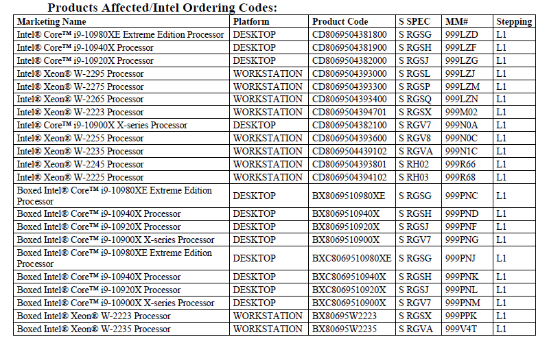 Os processadores relacionados Xeon W-22xx para estações de trabalho existiam em uma variedade mais ampla, mas a Intel deixará de enviá-los de acordo com um cronograma semelhante. Além disso, os chipsets X299 e C422 introduzidos em 2017 para a plataforma Intel LGA 2066 também serão excluídos da gama de produtos da empresa disponíveis para compra. Os fabricantes de placas-mãe poderão encomendá-los até 26 de abril do próximo ano, com o último lote de chipsets saindo dos armazéns da Intel até 31 de janeiro de 2025. No varejo, todos os produtos listados acima serão encontrados por muito tempo, mas é improvável que a demanda por eles seja alta, porque senão a Intel não pararia de produzi-los. Rumores atribuem às intenções da Intel de introduzir processadores Sapphire Rapids-X para o segmento HEDT,