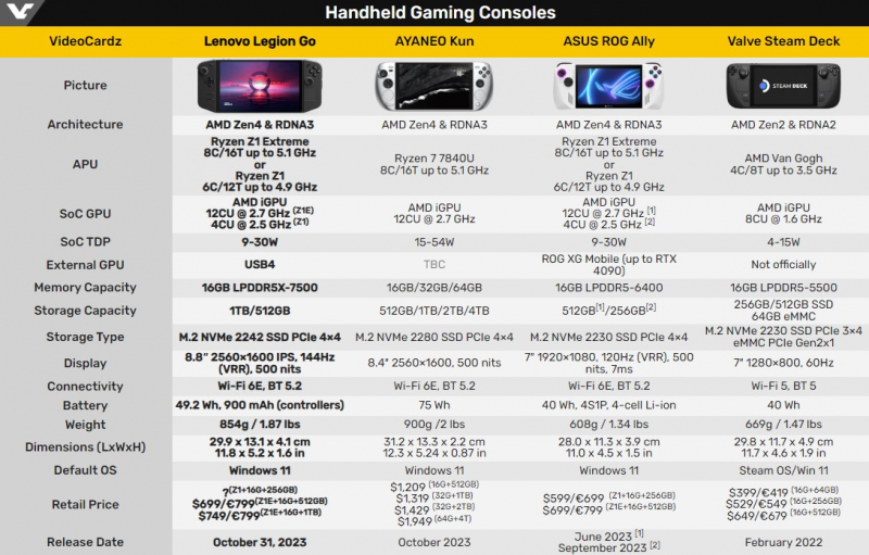 No geral, Legion Go é uma alternativa interessante a outros consoles portáteis. O novo produto poderá impor uma concorrência séria aos consoles da ASUS e AyaNeo. A versão Legion Go com o chip Ryzen Z1 Extreme, 16 GB de RAM e 512 GB de memória permanente custa $699/€799, a versão com SSD de 1 TB recebeu um preço de $749/€799. Competir com o Steam Deck antigo, mas ainda relevante, será mais difícil. Principalmente devido ao preço acessível deste último.