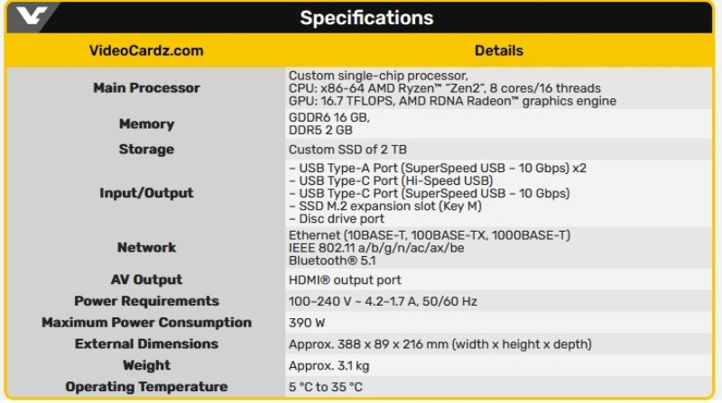 Também ficou conhecido pelos videobloggers que o PlayStation 5 Pro possui não apenas 16 GB de memória de vídeo GDDR6, mas também 2 GB de RAM DDR5, que são reservados para garantir o funcionamento do sistema operacional. O consumo máximo de energia do dispositivo é de 390 W.