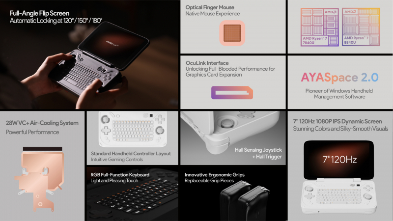AyaNeo Flip DS e AyaNeo Flip KB com processador Ryzen 7 7840U estarão à venda em março deste ano. As opções de decodificadores baseadas no Ryzen 7 8840U aparecerão no final de abril.