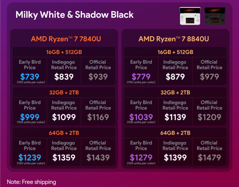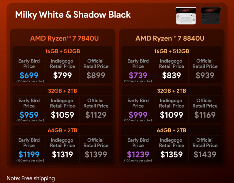 As opções de decodificador com Ryzen 7 8840U custam a partir de US$ 739 para a versão Flip KB (com teclado) e a partir de US$ 779 para Flip DS (com tela adicional). Nas configurações máximas, seus preços de varejo serão de US$ 1.439 e US$ 1.479, respectivamente.