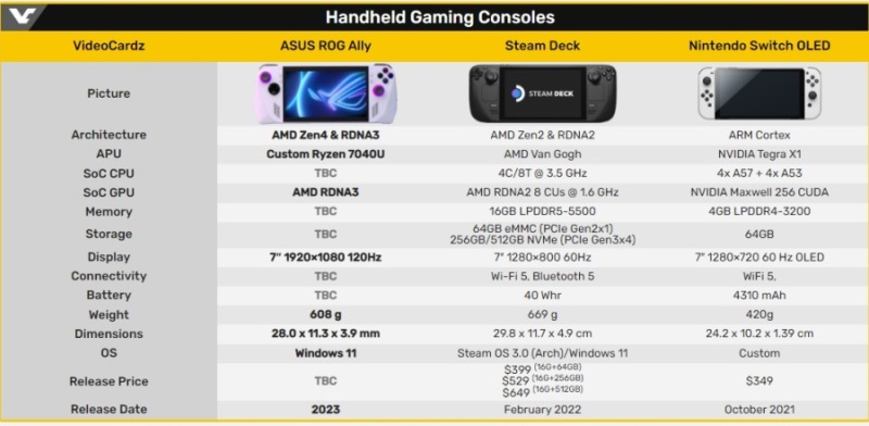 O ROG Ally será baseado em uma APU AMD que combina núcleos Zen 4 e uma unidade gráfica RDNA 3. Parece que estamos falando de membros da família AMD Phoenix, mas os parâmetros exatos do chip ainda não foram divulgados. Anteriormente, foi relatado que podemos falar sobre uma solução personalizada criada pela AMD especificamente para a ASUS. Para comparação, o Steam Deck possui um processador com Zen 2 e RDNA 2. Também foi relatado que o console ASUS receberá uma tela de 7 polegadas com taxa de atualização de 120 Hz, que é duas vezes maior que a tela do Steam Deck. A nova tela da ASUS também receberá maior resolução e maior brilho.