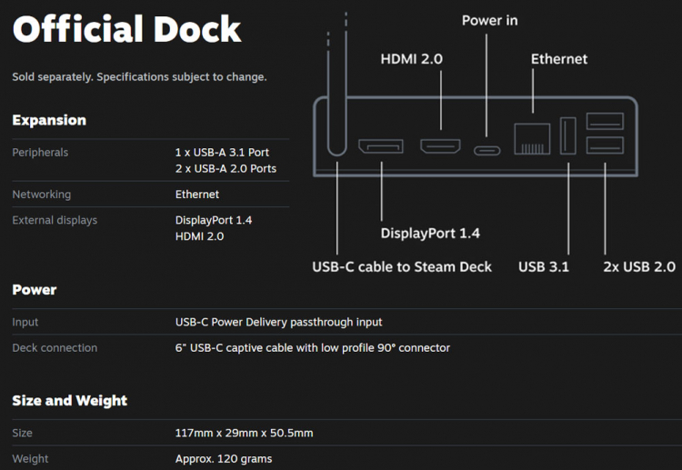Deve-se notar que o Steam Deck também pode ser conectado a hubs de terceiros e monitores externos via USB Type-C. A Valve anuncia que continuará trabalhando na compatibilidade do decodificador com equipamentos de terceiros.