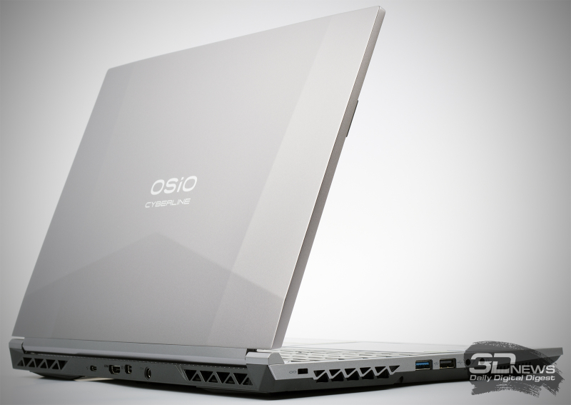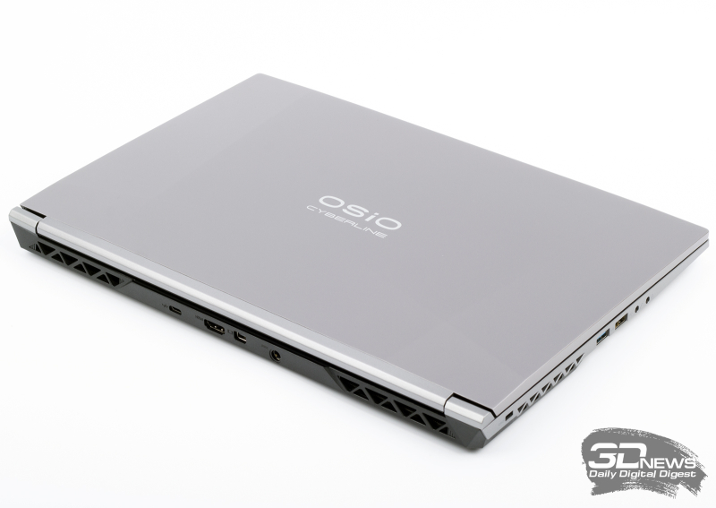 Você olha para o CyberLine C150i-003 e entende imediatamente que este é um laptop para jogos. Essa impressão se deve em grande parte ao formato convexo incomum da tampa da tela. A associação de um laptop a um carro esportivo não poderia ser mais óbvia. Porém, não há pretensão excessiva no design do Cyberbook: o modelo ao mesmo tempo parece rígido.