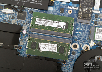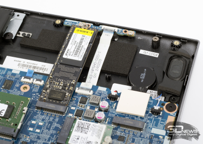 Como já mencionado, o conjunto contém um par de módulos DDR4-3200 com capacidade total de 16 GB. Cyberbook usa um kit da SK Hynix. Um SSD da BIWIN também está instalado aqui – não o modelo NVMe mais rápido de sua classe. O slot M.2 adjacente opera no modo PCI Express x4 3.0.