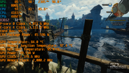 - The Witcher 3: Wild Hunt – Edição Completa. DirectX 12. Novigrad e arredores. Graphics Quality Ultimate+, RT Off, TAAU, NVIDIA HairWorks Off, Dynamic Resolution Off.