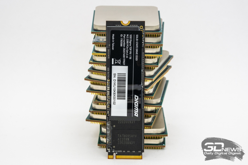 Na verdade, os fabricantes de SSDs do segundo e terceiro escalões não têm atualmente nenhum obstáculo que os impeça de lançar unidades modernas de alto desempenho. Os desenvolvimentos de fornecedores independentes de controladores – Phison e Innogrit – alcançaram os líderes de mercado em termos de características. Os chips PS5018-E18 e IG5236 têm poder computacional suficiente para permitir que os SSDs baseados neles utilizem totalmente a largura de banda da interface PCIe 4.0 x4 em operações lineares e forneçam desempenho próximo a um milhão de IOPS em cargas de blocos pequenos. Isso é o suficiente para criar soluções emblemáticas completas e, portanto, marcas como Digma só precisam negociar com os desenvolvedores desses chips, escolher uma boa memória NAND e solicitar uma montagem serial da configuração resultante de um fabricante de ODM.