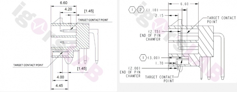 O atual 12VHPWR (H+) e o novo 12V2x6 (H++) em corte, vista lateral. Fonte da imagem: Igor’sLAB
