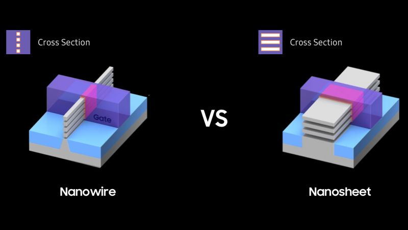A tecnologia mais recente da Samsung é chamada MBCFET. A empresa coreana pretende utilizar a segunda geração da estrutura de transistor com porta envolvente (GAA) a partir do atual semestre, e também utilizá-la no âmbito do processo de 2 nm que será dominado posteriormente. A própria tecnologia SF3 aumenta o desempenho do chip em 30%, melhora sua eficiência energética em 50% e também reduz a área da matriz em 35% em comparação com o GAA de primeira geração. Quando combinada com a fonte de alimentação traseira (BSPDN), esta estrutura de transistor proporcionará benefícios adicionais.