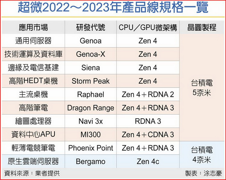 Produtos AMD em 2022-2023. Fonte da imagem: China Times