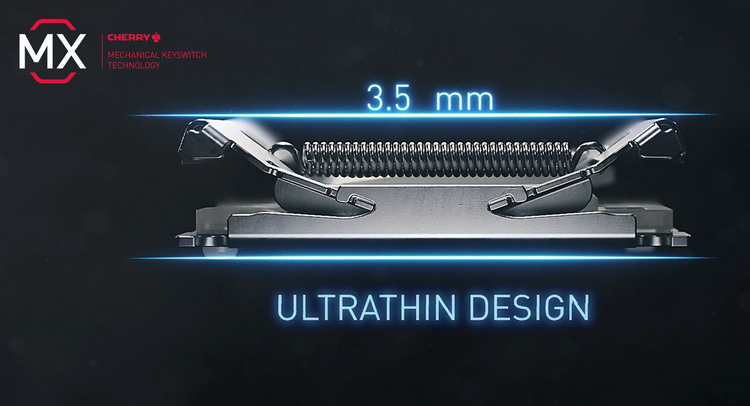 A Cherry apresentou os novos interruptores táteis mecânicos MX Ultra Low Profile Tactile, que apresentam um design de baixo perfil com uma altura de apenas 3,5 mm. Eles diferem do MX Ultra Low Profile Click usual pela ausência de um clique característico quando pressionado.
