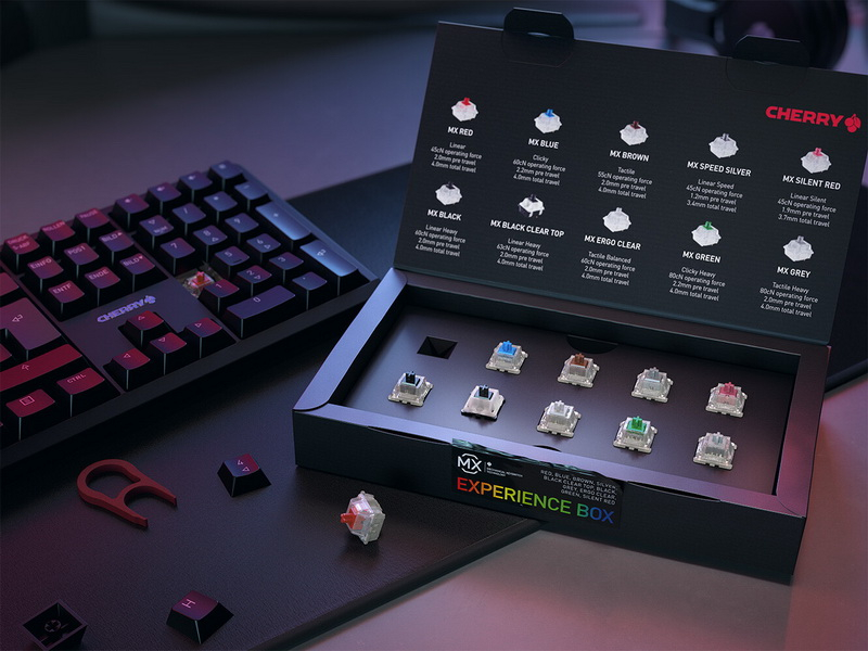 A Cherry lançou dois conjuntos de switches – MX Experience Box e MX Switch Kit. O primeiro conjunto inclui dez tipos de interruptores mecânicos produzidos pelo fabricante (um para cada tipo), o segundo conjunto oferece 23 interruptores do mesmo tipo.