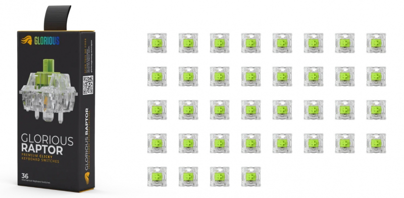 A Glorious introduziu novos interruptores mecânicos de substituição Raptor para teclados com conectores de 5 pinos. Eles apresentam construção premium e um clique duplo para feedback tátil máximo.