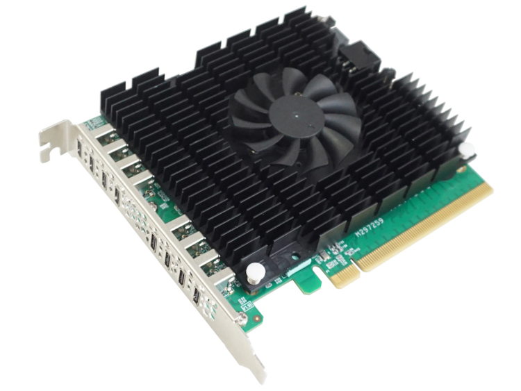 Ressalta-se que para versões mais antigas, as portas USB funcionam de forma totalmente independente umas das outras. Um sistema de refrigeração ativo com radiador e ventilador é responsável pela dissipação de calor. As novidades estão posicionadas como uma alternativa à interface Thunderbolt 3. As placas de expansão são adequadas para tarefas como processamento de dados multimídia e materiais de vídeo, arquivamento de arquivos, etc.
