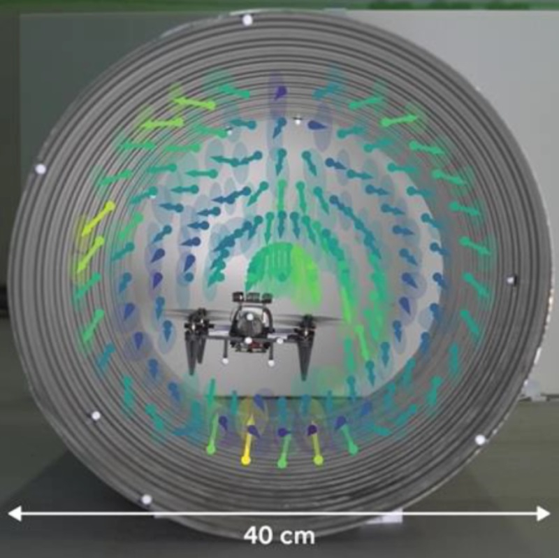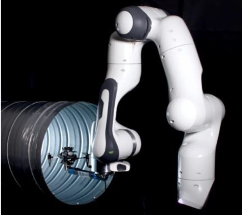 Cientistas franceses ensinaram drones compactos a navegar dentro de dutos de ar de 35 cm de diâmetro. Para isso, eles usaram um braço robótico com um sensor de força e torque para medir a força do fluxo de ar em centenas de pontos dentro de um pequeno duto de teste. Essa abordagem permitiu que eles construíssem um mapa indicando áreas instáveis e potencialmente perigosas, bem como zonas mais seguras onde os fluxos de ar se compensam.