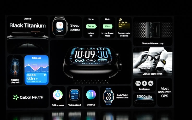 O Watch Ultra 2 receberá o watchOS 11, que inclui o Smart Stack – um conjunto de widgets e ferramentas para rastrear a condição corporal do usuário. Junto com isso, será lançado o aplicativo Vitals, que informará o quão típicas são as principais métricas, como frequência respiratória ou duração do sono, para o usuário.