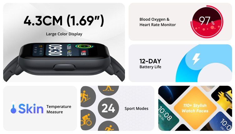 A Realme anunciou oficialmente o relógio inteligente TechLife Watch SZ100, que oferece longa duração da bateria – até 12 dias com uma única carga de uma bateria de 260 mAh.