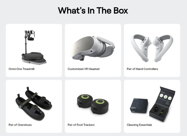 Ao contrário de outras esteiras virtuais, Omni One é um dispositivo multifuncional. Um fone de ouvido de realidade virtual está incluído no pacote. Inicialmente, o Omni One deveria vir com o headset Pico Neo 2 VR. Porém, dado o longo desenvolvimento do aparelho, o headset foi substituído por um Pico 4 Enterprise mais moderno, com função de rastrear os olhos e o rosto do usuário, como. bem como RAM mais rápida.