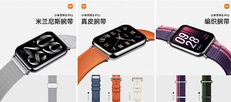 A pulseira inteligente vem com tiras de tecido, couro e poliuretano, que podem ser adquiridas separadamente. Com uma pulseira de plástico, o Xiaomi Smart Band 8 Pro custa 400 yuans (US$ 55), com uma pulseira de couro – 450 yuans (US$ 62). Uma pulseira de plástico adicional pode ser comprada por 40 yuans (US$ 6), tiras de tecido e couro por 100 yuans cada (US$ 14). O metal de vime é avaliado em 200 yuans (US$ 28).