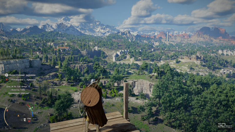 Isso acontece o tempo todo — ou o próprio jogo dá dicas de uma direção diferente, ou você de repente sente vontade de, digamos, pegar um machado e derrubar algumas árvores. A caminho de uma missão da história, você pode se deparar com ruínas antigas — às vezes há um enigma esperando por você, outras vezes apenas alguns troféus. Você verá altares, e interagir com eles desencadeia vários desafios — seja deslizar por uma encosta por uma certa quantidade de metros ou derrotar vários inimigos com uma arma específica em poucos segundos. Se tiver sorte, você poderá subir em algum lugar e encontrar um baú com equipamentos únicos — os melhores itens geralmente estão bem escondidos.