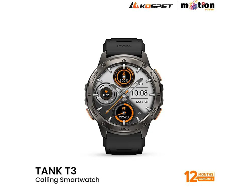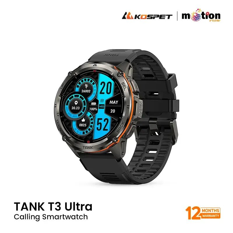 O relógio inteligente KOSPET TANK T3 Ultra também pertence à categoria de dispositivos que possuem maior proteção contra umidade, poeira, quedas e choques, tendo passado com sucesso nos testes de conformidade com o padrão MIL-STD-810H. Assim como o modelo mais novo, o smartwatch é equipado com tela touchscreen AMOLED de 1,43 polegadas com resolução de 466 × 466 pixels, além de suporte para Always-On Display (AOD).