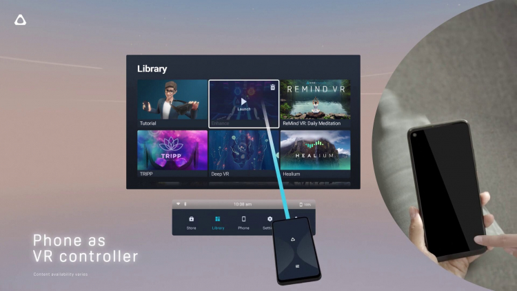 Além disso, o smartphone pode ser usado como um controlador para controlar a interface do Vive Flow. O suporte para a tecnologia Miracast não está excluído, com a ajuda da qual será possível transmitir conteúdo para o fone de ouvido a partir de um smartphone. Além disso, aparentemente, haverá uma conexão com fio por meio de um cabo USB Tipo-C.