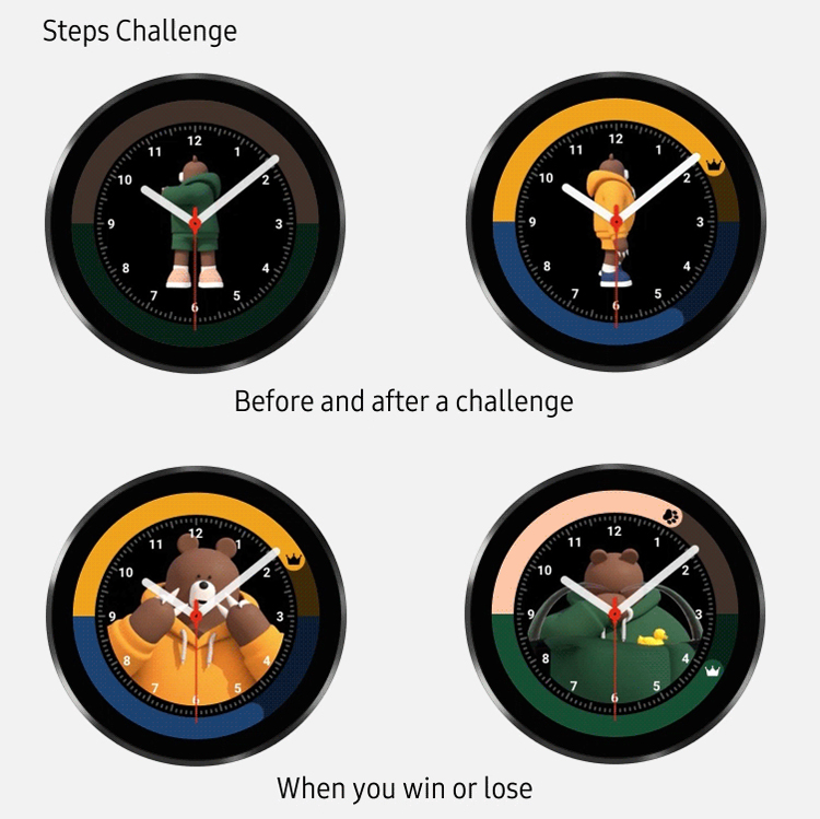 Em particular, quatro novos formatos de discagem foram implementados. Para usuários de condicionamento físico, o Info Brick foi projetado para exibir os principais sinais vitais na tela, desde a frequência cardíaca e níveis de estresse até dados de atividades diárias. Outros mostradores de relógio podem exibir uma previsão do tempo, painel de controle ou papel de parede ao vivo.