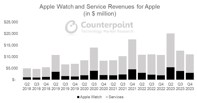 Se a Apple tratar todos os proprietários de iPhones como potenciais usuários do Apple Watch, a receita anual do smartwatch poderá ser de US$ 70 bilhões, 550% acima da previsão atual de receita do smartwatch da empresa. Ao mesmo tempo, a oportunidade de gerar mais renda aumentará devido aos modelos premium, como o novo Apple Watch Ultra, que custa o mesmo preço do iPhone 14. Além disso, os smartwatches terão um papel fundamental no desenvolvimento de um segmento de negócio relacionado com a prestação de serviços, como Apple Music, Apple Care e Apple Podcasts. Pode haver outro espaço para crescimento se a Apple lançar mais serviços para corresponder ao fator de forma do smartwatch.