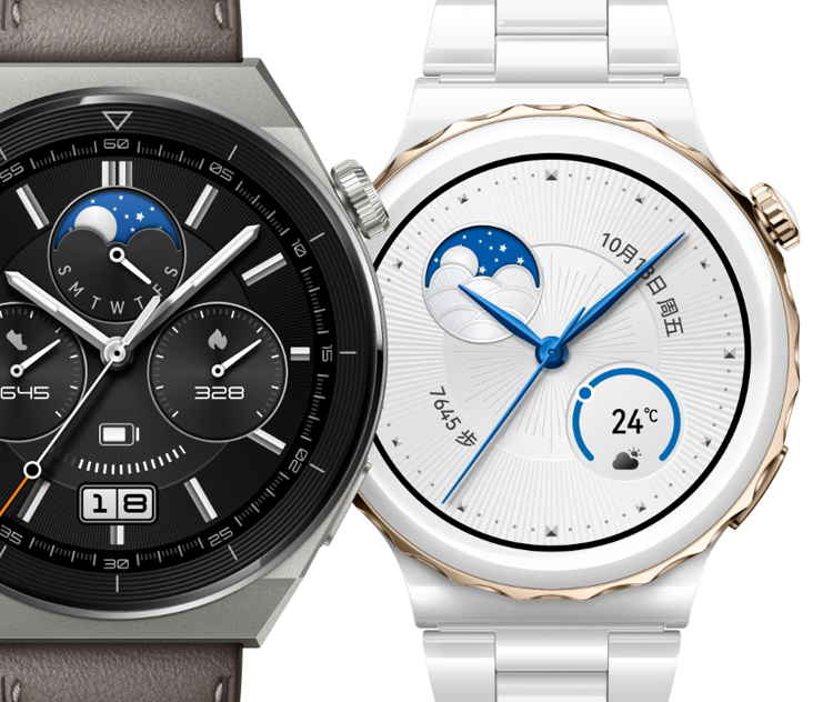 O dispositivo está disponível em duas versões – uma versão de titânio de 46 mm e uma versão de cerâmica de 43 mm. O primeiro está equipado com uma tela AMOLED redonda de 1,43 polegadas, o segundo – 1,32 polegadas.