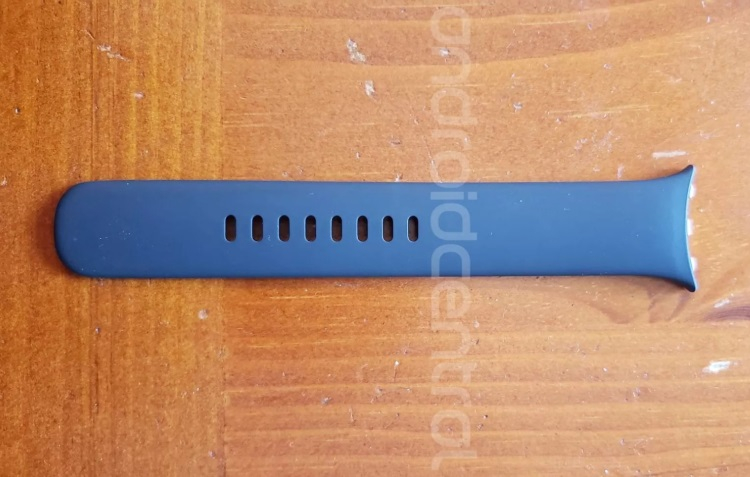 Na parte de trás do case, que parece metal, há um sensor óptico de frequência cardíaca. O relógio é complementado por uma pulseira de silicone que se prende à caixa com fechos e se assemelha às pulseiras usadas nos smartwatches Fitbit Versa e Sense.