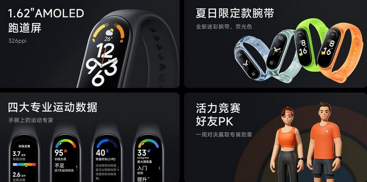 A Xiaomi também melhorou o componente fitness do Mi Band 7. Ele recebeu suporte para 120 modos de treinamento, quatro modos esportivos profissionais, aprendeu a detectar automaticamente quando o usuário começou a treinar e também oferecerá a oportunidade de competir com os amigos.