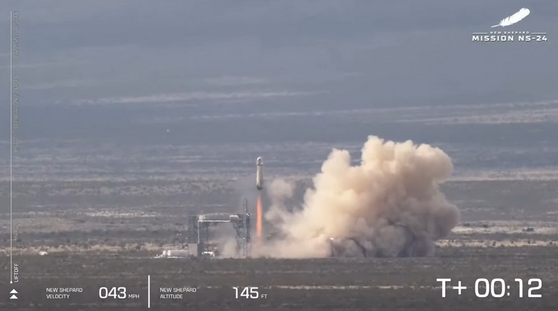 Tendo subido a uma altitude predeterminada de cerca de 66 milhas (106 km) acima da superfície da Terra, a cápsula New Shepard com sua carga separou-se do veículo lançador e passou algum tempo no espaço sideral. O primeiro estágio reutilizável do foguete fez então um pouso suave e controlado. Poucos minutos depois, a cápsula da missão NS-24 pousou de paraquedas. A gravação do lançamento pode ser conferida abaixo (cerca de 26 minutos).