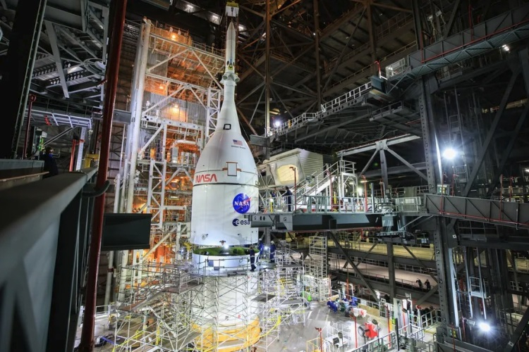 A confirmação da nova data de teste de vôo veio um dia depois que os engenheiros da NASA concluíram a montagem do SLS em um enorme hangar localizado no Centro Espacial. Kennedy na Flórida. O SLS tem cerca de 98 metros de altura, e a espaçonave Orion está localizada no topo do foguete, que deve ser usado para levar astronautas à superfície lunar.