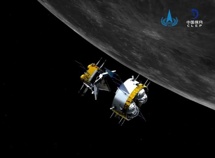 Representação gráfica da sonda Chang’e-5 em órbita. Fonte da imagem: Xinhua