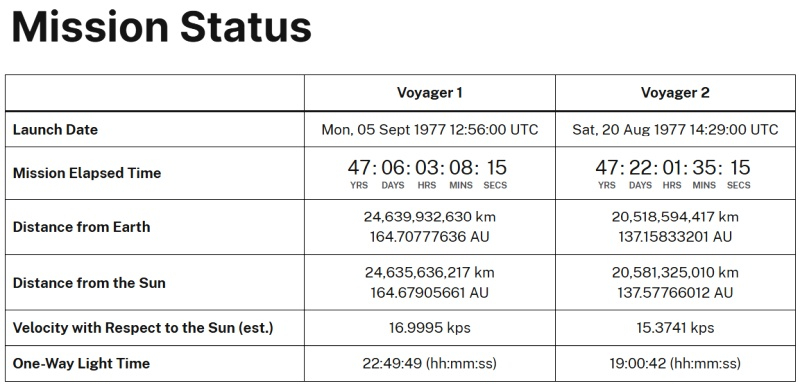 A espaçonave Voyager explora o espaço interestelar além do sistema solar. Os cientistas e engenheiros da missão estão a fazer todos os esforços para prolongar ao máximo a vida útil das sondas, mas isso está a tornar-se cada vez mais difícil de fazer. “Todas as decisões que teremos de tomar no futuro exigirão muito mais análise e cautela do que nunca”, disse Suzanne Dodd, gestora do projeto da Voyager.